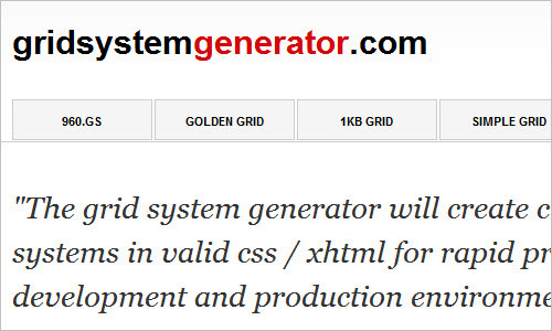 Ova alatka pravi mrežu u validnom css/xhtml kodu, za brz razvoj vaših aplikacija. Sistem pravljenja mreža vam omogućava da odredite širinu, broj kolona i margine, kako bi mreža bila fleksibilnija.