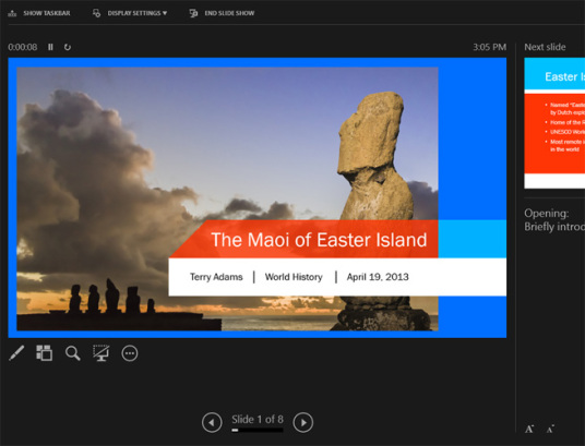 Novi Office je isti onaj dobro poznati Office kojeg koristite već godinama, ali sada sa neodoljivim dizajnom i dodatnim mogućnostima. Jedna funkcionalnost koja se ističe jeste PowerPoint-ov novi Presenter View koji omogućuje pregled slajdova i ostalih podataka na ekranu vašeg računara tokom prezentacije. Druga opcija je novi početni ekran koji iskače kada pokrenete Word, Excel, PowerPoint i ostalo i koji pokazuje popularne opcije templejta.