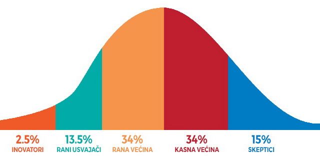 Da pređemo na stvar – Model difuzije inovacija, grafički predstavljen, izgleda ovako: